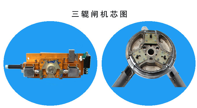 三辊闸机采用液压减震,电磁离合机芯,转动无噪音,机芯转动300万次无故障 |